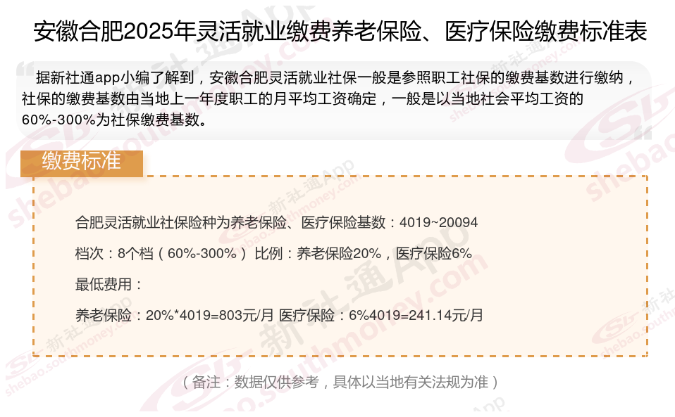 二、安徽合肥2024-2025年灵活就业社保缴费基数、比例最新消息