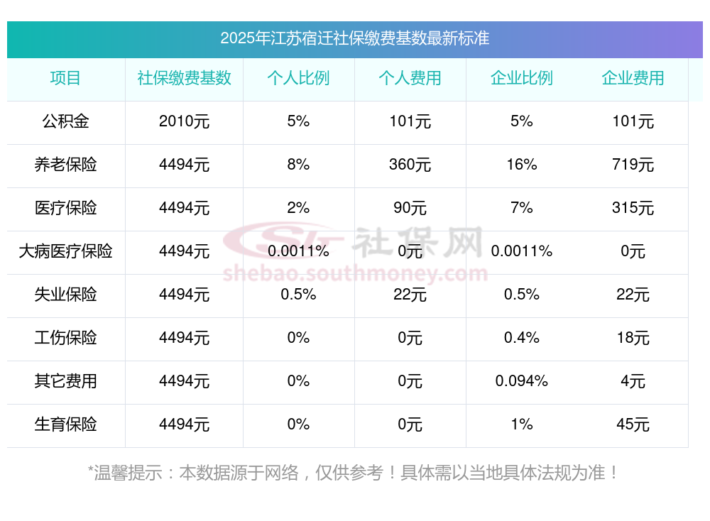 2025年江苏宿迁社保个人缴费基数及标准比例是多少,缴费基数、缴费比例以及当地的具体法规等因素相互作用,最终确定了社保的缴费金额。