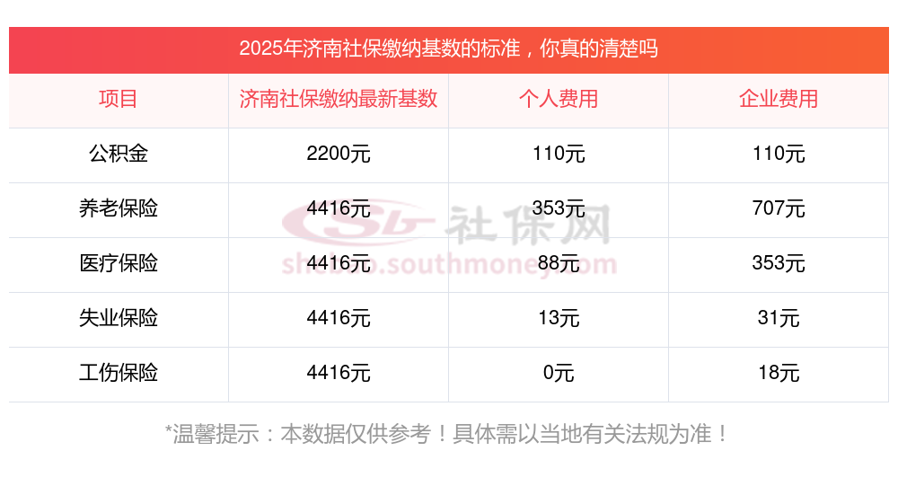 一、据新社通小编了解到,主要根据职工上一年度的月平均工资来初步确定社保缴费基数,随后结合当地社会平均工资上下限(60%-300%)来完善调整。 目前,济南社保缴费基数为:4416.00,个人费用约为:353.28元,企业费用约为:706.56元。