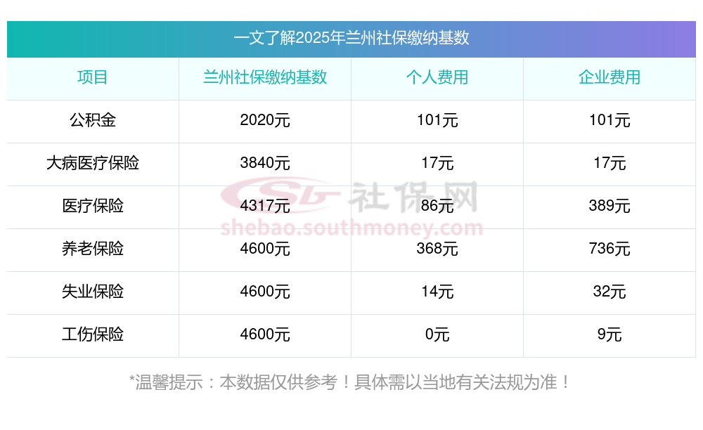 (1)据新社通app-查阅了解到,确定社保基数要依据职工上一年度1月至12月的所有工资性收入所得的月平均额,此基数用于计算缴纳社会保险费的工资基数。 目前该兰州社保的缴费基数为:4600.00,个人费用约为:368元,企业费用约为:736元。