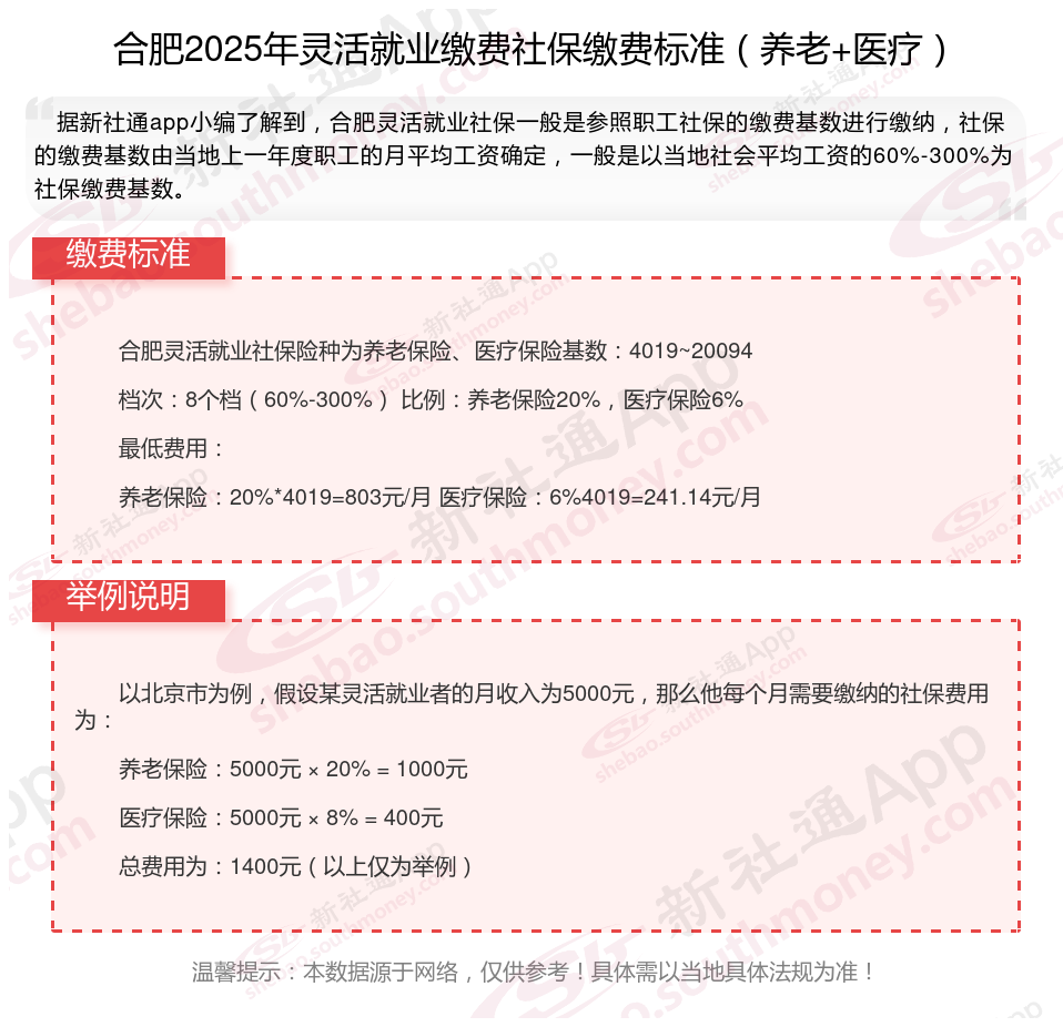 一、2024年合肥灵活就业社保缴费标准表 合肥灵活就业社保多少钱一个月?
