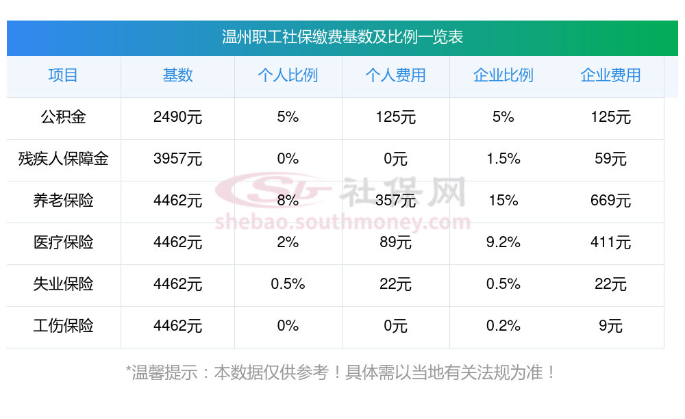 温州职工社保缴费基数2024-2025年最新标准,如下: