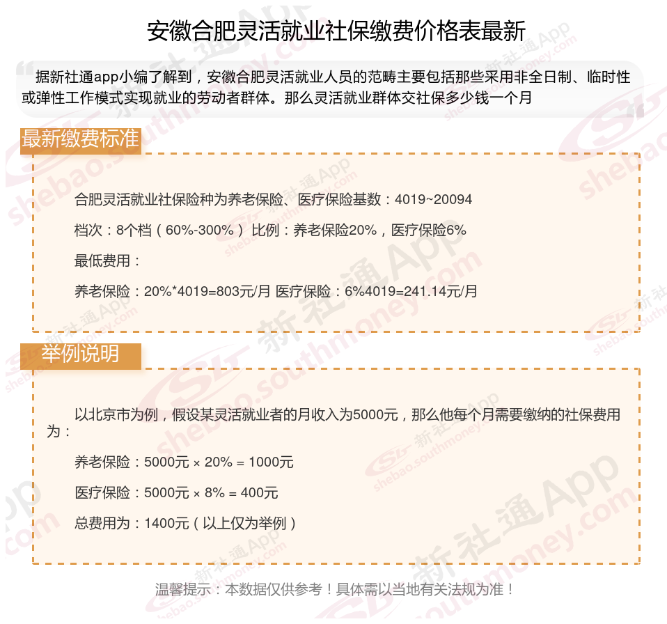 2025年安徽合肥灵活就业社保缴费标准多少钱一个月?