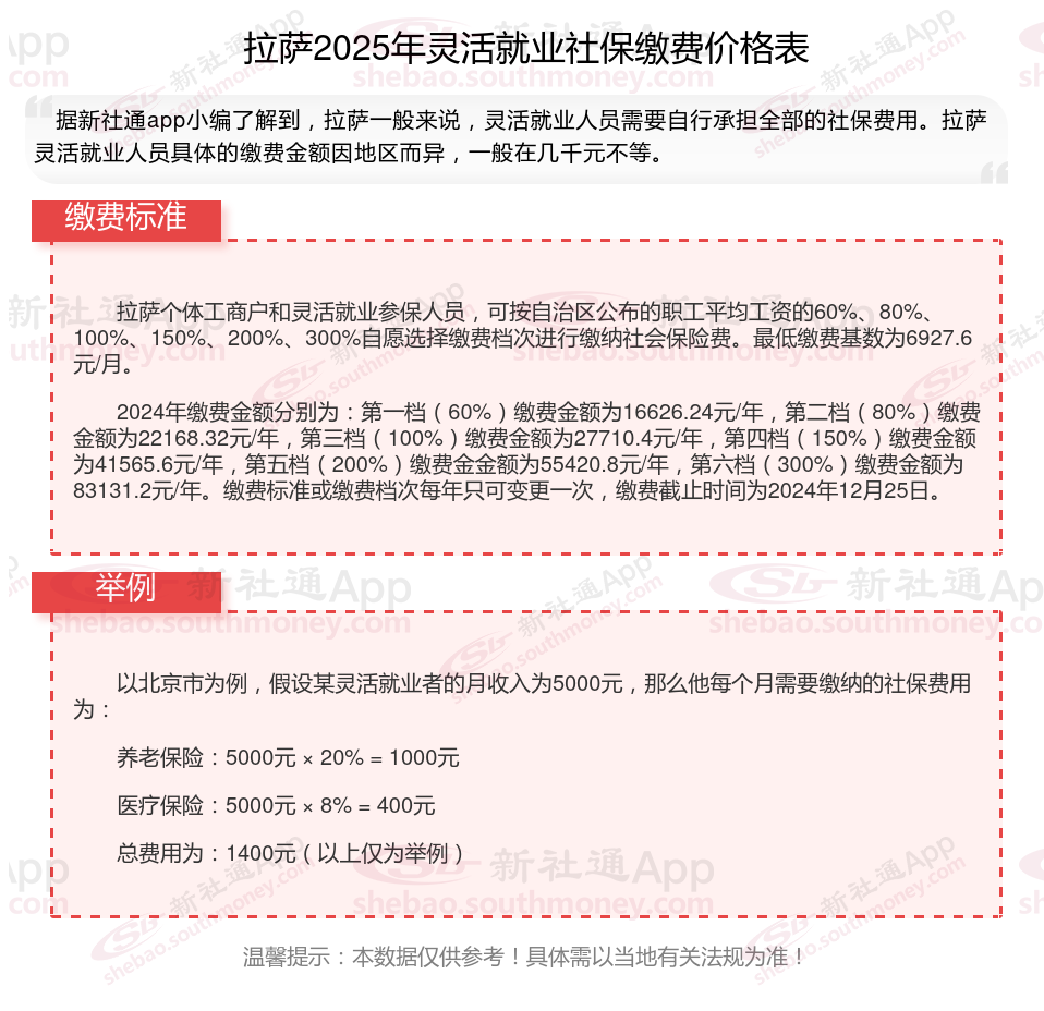 一、2024年拉萨灵活就业社保缴费标准表 拉萨灵活就业社保多少钱一个月?
