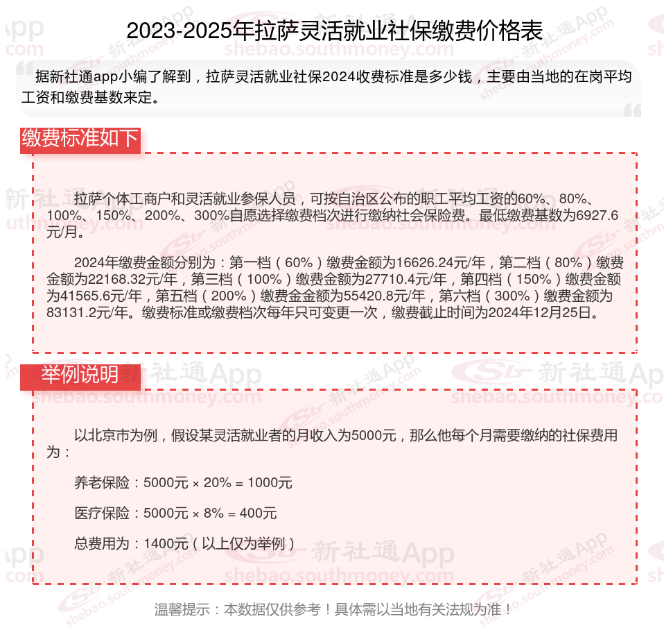 一、2025年拉萨灵活就业社保缴费标准表 2025年拉萨灵活就业社保多少钱一个月?