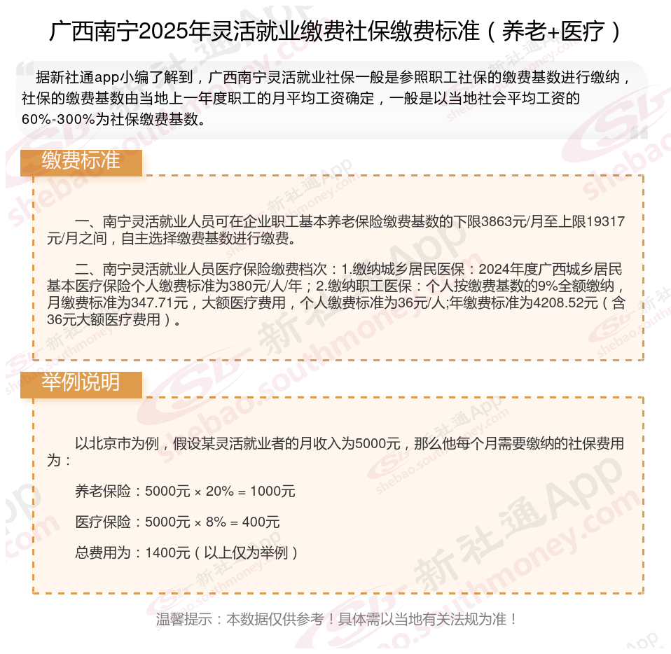 灵活就业,作为一种非传统的就业方式,近年来蓬勃发展。那么2025年广西南宁灵活就业人员社保需要交多少钱?下面随新社通小编一起来看看。