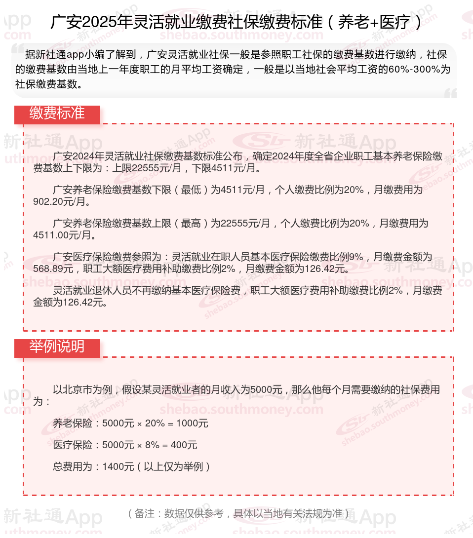 以上就是广安灵活就业社保缴费的全部内容,数据及内容供参考!希望对你有帮助,欢迎关注新社通解锁更多社保专业资讯。
