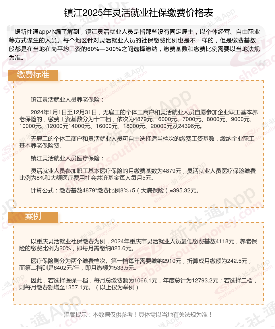 三、2025年镇江灵活就业社保缴费标准,最新如下: