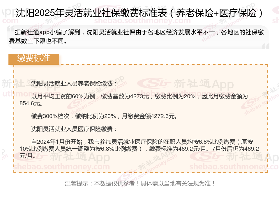 一、2025年沈阳灵活就业社保缴费标准表 沈阳灵活就业社保多少钱一个月?