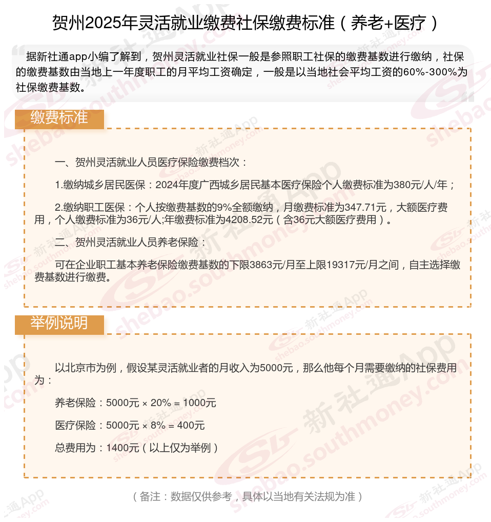 贺州灵活就业社保多少钱一个月?