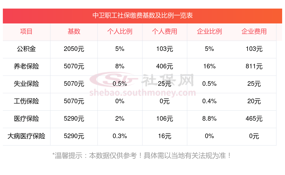据新社通app获悉:中卫企业职工社保缴费基数为:3579.00元,中卫社保要多少钱?2025年个人社保缴费标准表(最低标准)?: