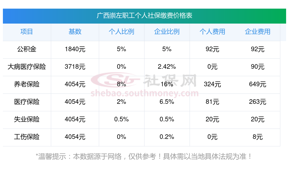 广西崇左社保个人缴费全解:2025年最新标准,算完心里有数了!2025广西崇左职工社保年缴费金额=社保月缴费基数*社保比例*12个月。需要提醒的,各地的社保缴费基数和比例是不一样的,因此,社保每年要交多少钱也是因地而异的。