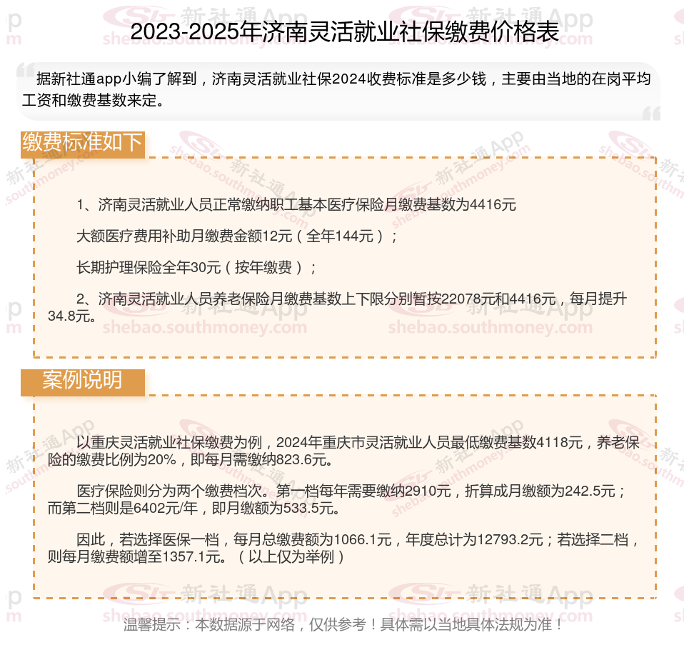 一、济南灵活就业社保缴费标准表2024年 济南灵活就业社保多少钱一个月?