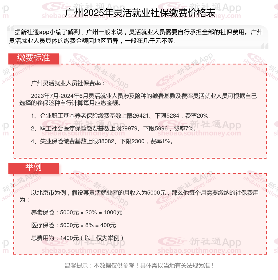 一、2024年广州灵活就业社保缴费标准表 广州灵活就业社保多少钱一个月?