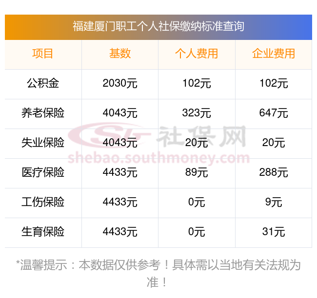 二、福建厦门职工社保缴费基数是多少,福建厦门2025年社保缴费多少钱一个月?