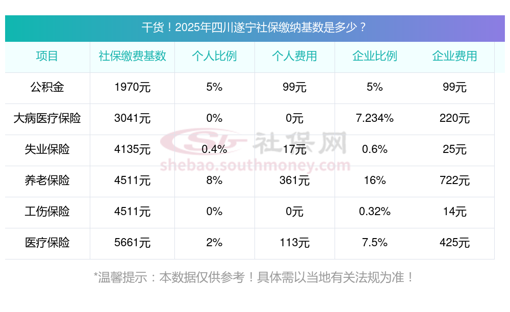 据新社通app显示,四川遂宁社保缴费基数2025年标准,(社保最低一个月要交多少钱)四川遂宁社保费用如下: