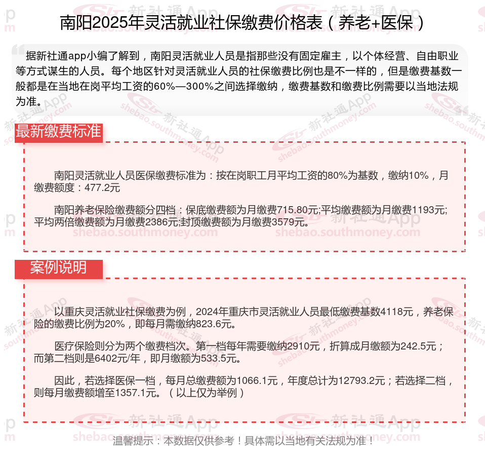 南阳灵活就业人员社保缴费档次表:一般分为五个档次,具体为上年度在岗职工平均工资的60%、70%、80%、90%和100%。灵活就业人员可以根据自己的意愿选择缴费档次,缴费比例为20%,其中12%进入统筹基金,8%进入个人账户。