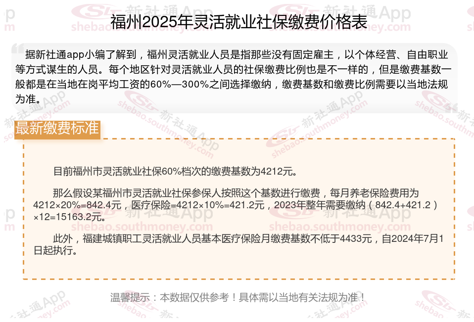 2025灵活就业社保缴费标准的调整,既体现了法规的连续性,又适应了经济社会发展的要求。灵活就业人员应根据自身情况,合理选择缴费基数和缴费比例,确保自身权益得到充分保证。那么2025年福州灵活就业人员社保需要交多少钱?下面随新社通小编一起来看看。