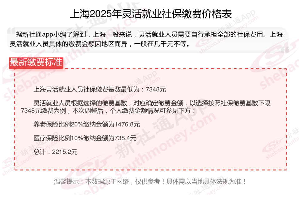 一、2025年上海灵活就业社保缴费标准表 上海灵活就业社保多少钱一个月?