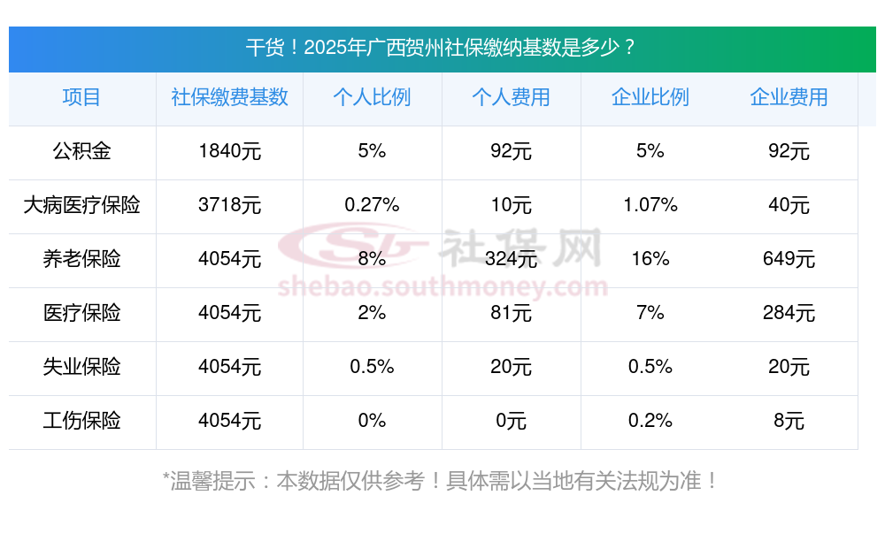 一、2025年广西贺州职工社保缴费基数是多少钱一个月?职工社保缴纳标准是多少?