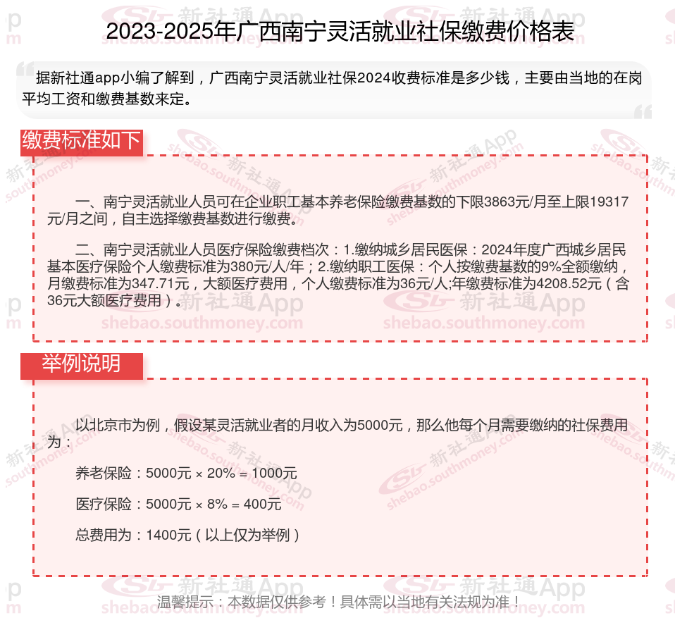 一、广西南宁灵活就业社保需要多少钱一个月?