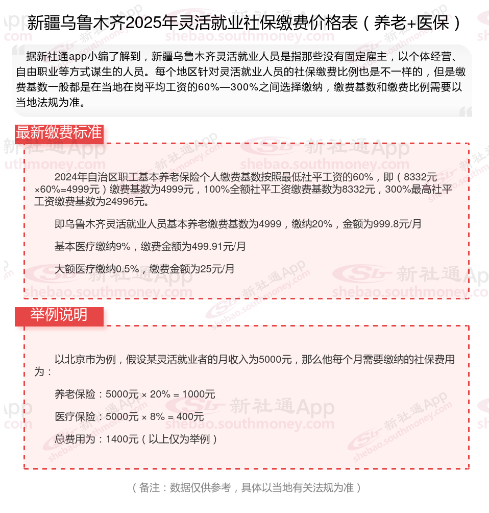 一、新疆乌鲁木齐灵活就业社保缴费基数及比例最新消息