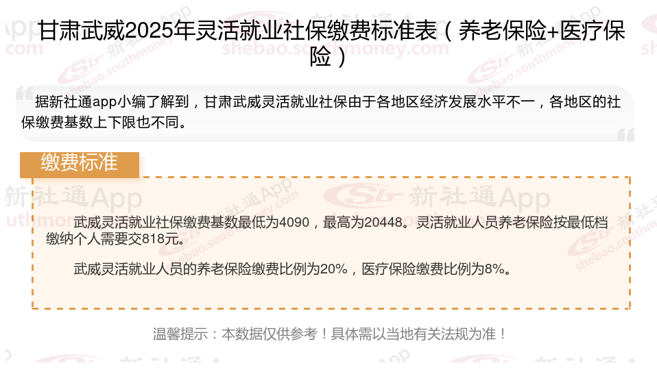 二、甘肃武威2024年灵活就业社保缴费基数、比例最新消息