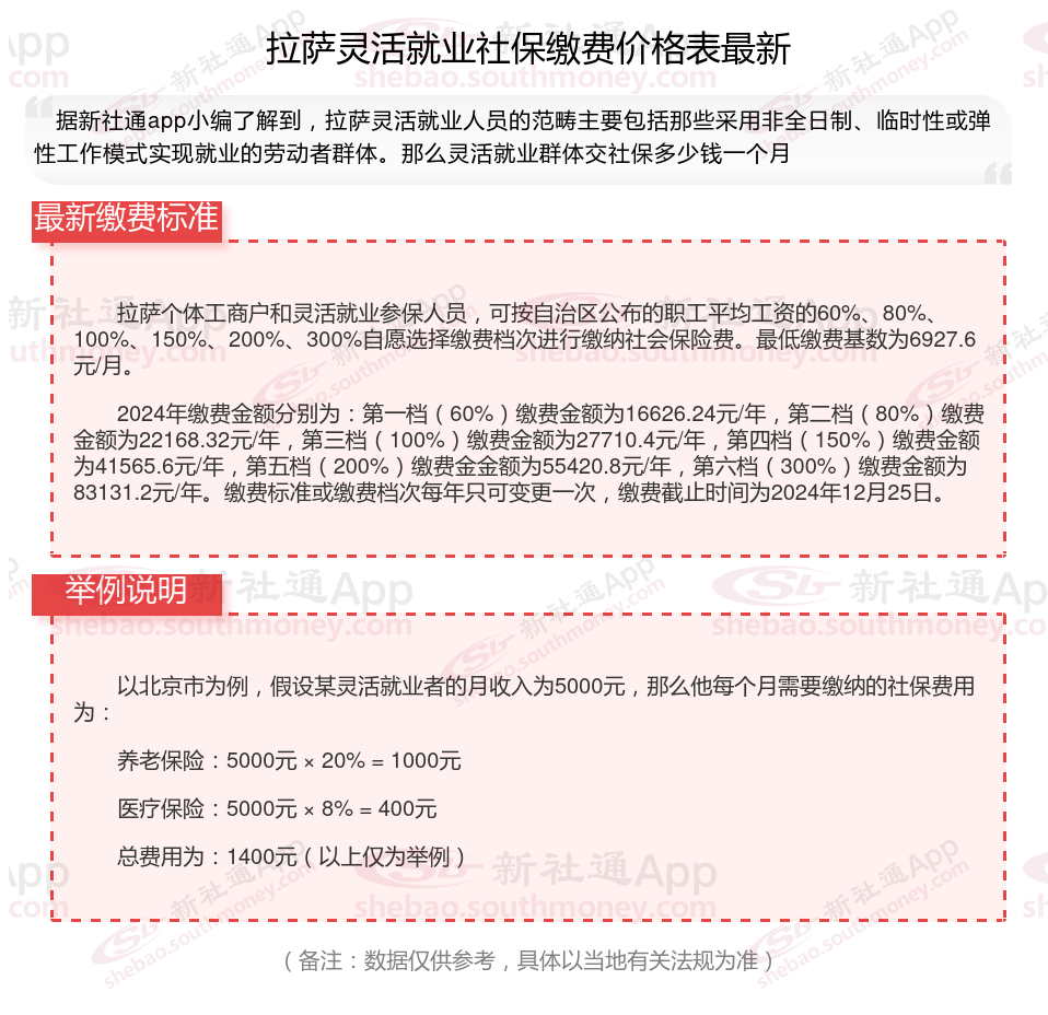 一、2024年拉萨灵活就业社保缴费标准表 拉萨灵活就业社保多少钱一个月?