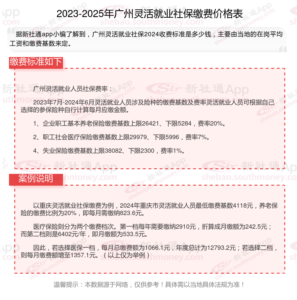 一、2024-2025年广州灵活就业社保缴费标准表 广州灵活就业社保多少钱一个月?