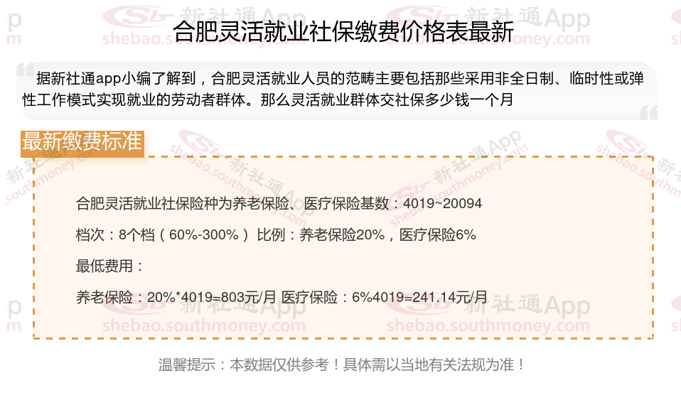 一、2024-2025年合肥灵活就业社保缴费标准表 合肥灵活就业社保多少钱一个月?