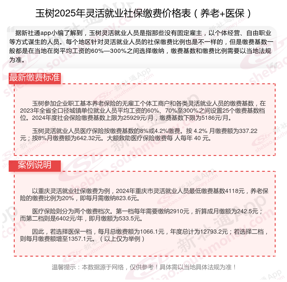 三、2025年玉树灵活就业社保缴费标准,最新如下: