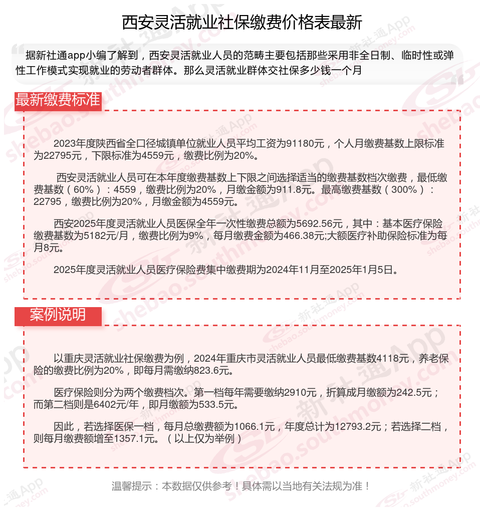 二、西安2024年灵活就业社保缴费基数及比例最新消息
