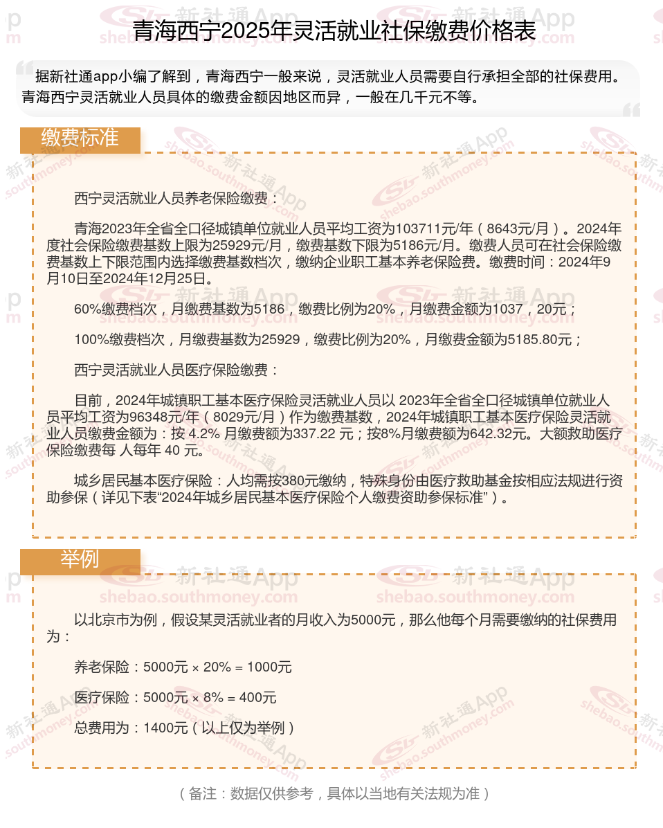 二、2025年青海西宁灵活就业社保缴费基数及比例最新消息