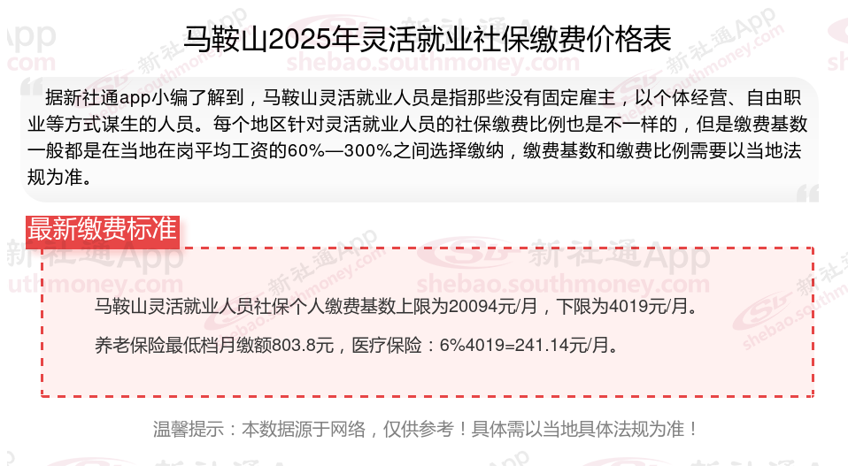 一、2025年马鞍山灵活就业社保多少钱一个月?