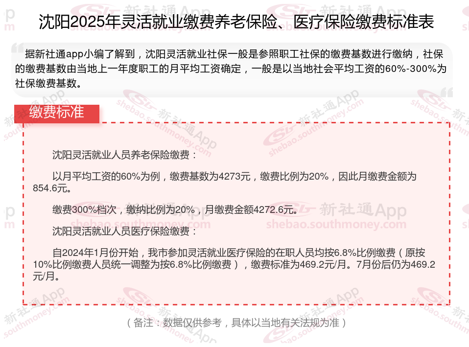 一、2024年沈阳灵活就业社保缴费标准表 沈阳灵活就业社保多少钱一个月?