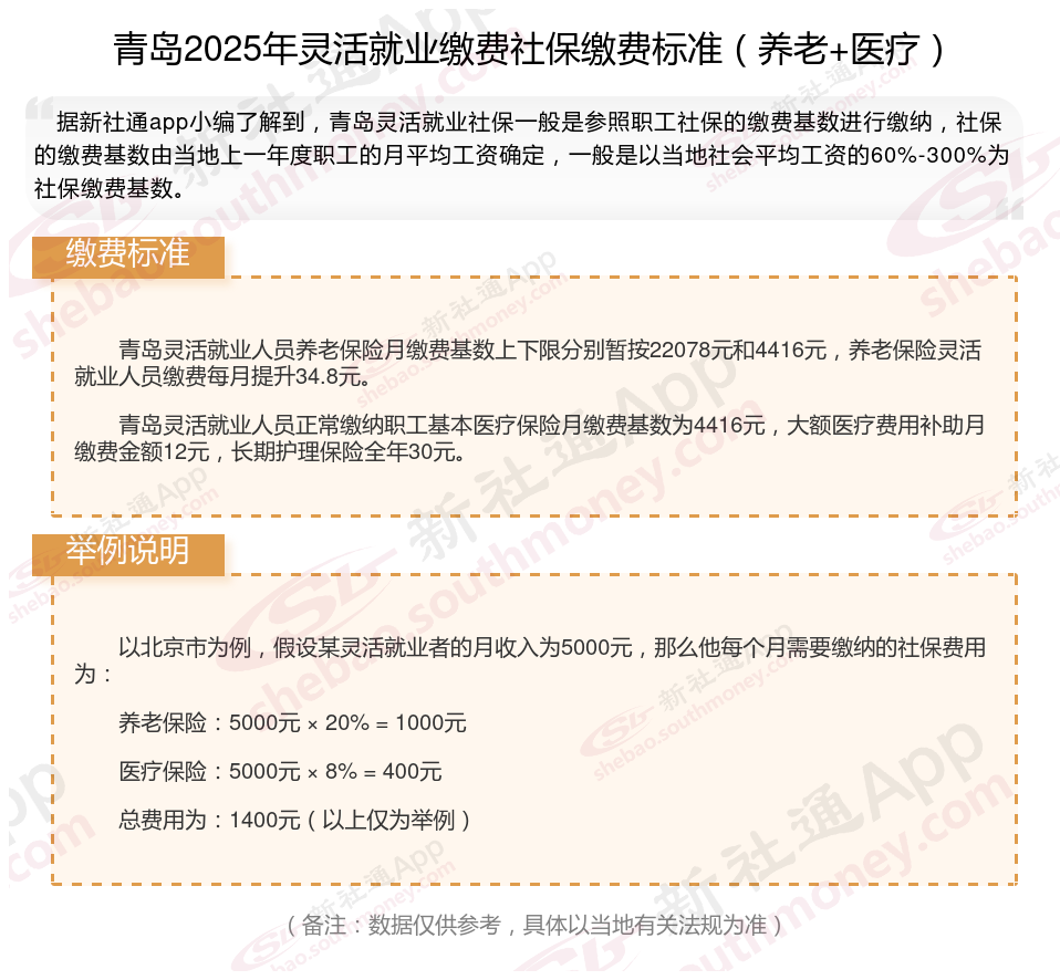 随着经济社会的不断发展,灵活就业群体日益壮大,其社保缴费问题也愈发受到关注。接下来随社保君了解一下2025年青岛灵活就业人员社保交多少钱的详细内容。