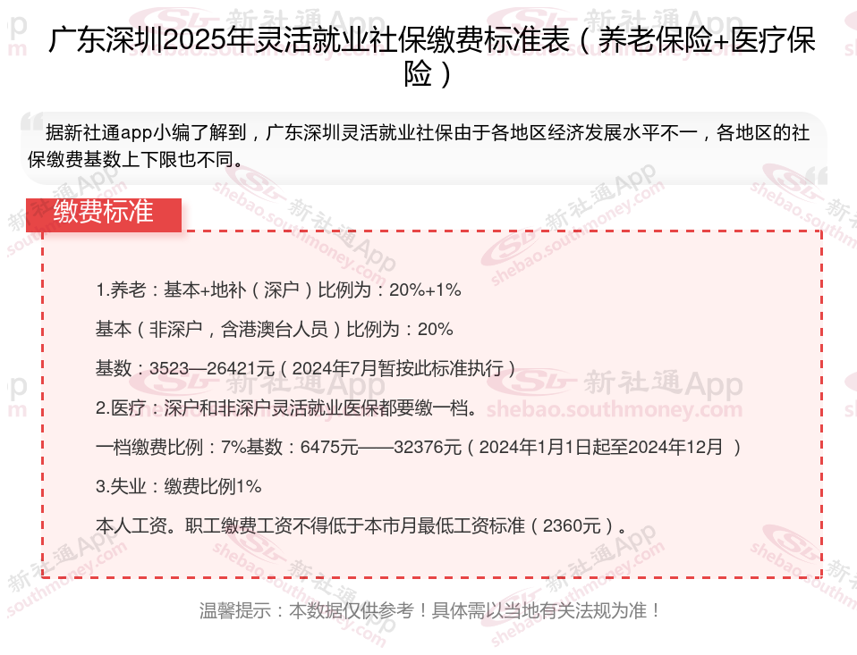 二、广东深圳2024年灵活就业社保缴费基数及比例
