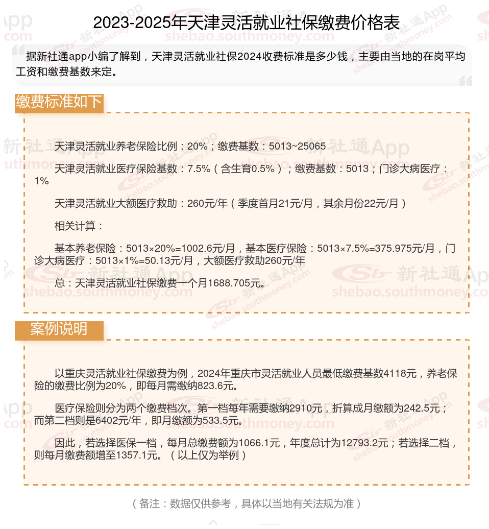 提示:天津灵活就业人员每个月的缴费压力还是比较大的,每个月的社保费用都是千元,缴费档次越高,灵活就业人员要缴纳的费用也越多。