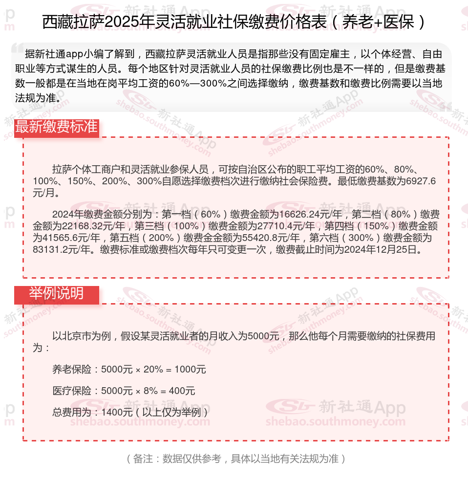 二、2024年西藏拉萨灵活就业社保缴费标准,最新如下: