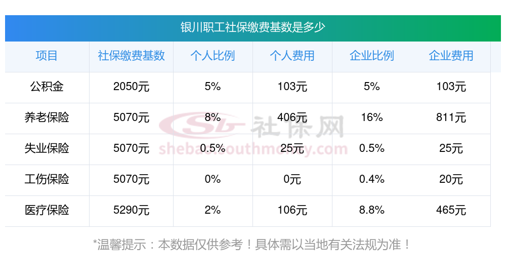 一、银川职工社保缴费基数是多少钱一个月?职工社保缴纳标准