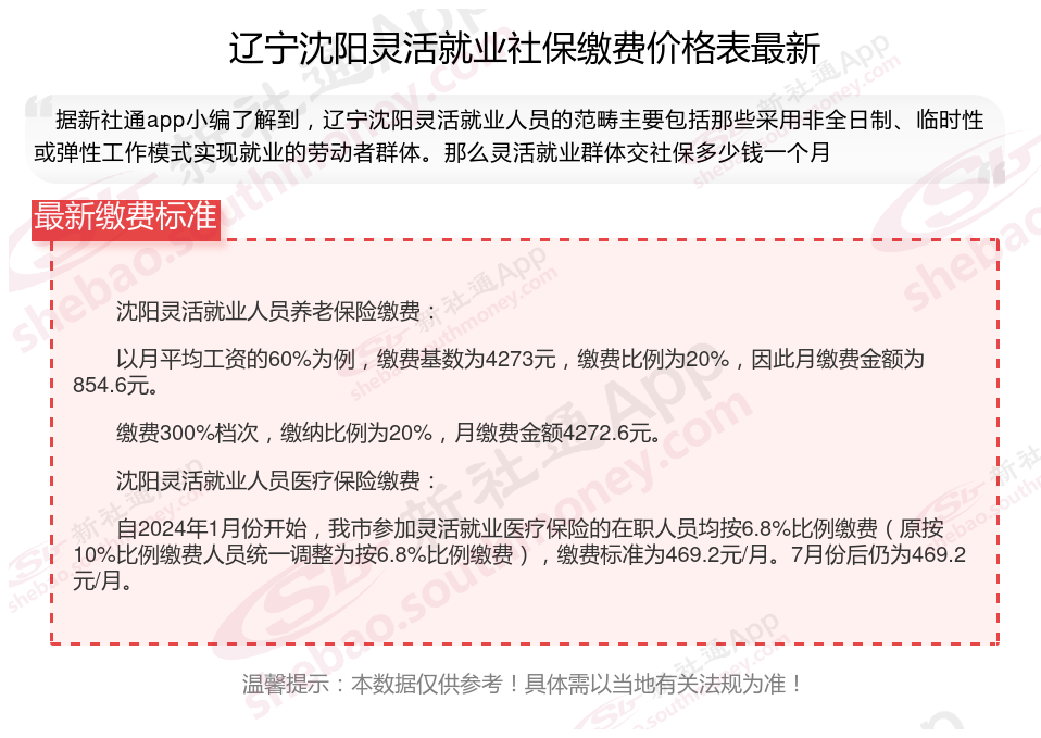 二、2024年辽宁沈阳灵活就业社保缴费标准是多少钱,最新如下:
