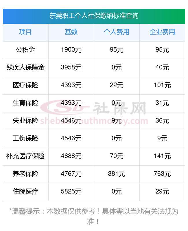 一、据新社通app获悉:东莞企业职工社保缴费基数为:3579.00元,东莞社保缴费基数2025年最新标准如下: