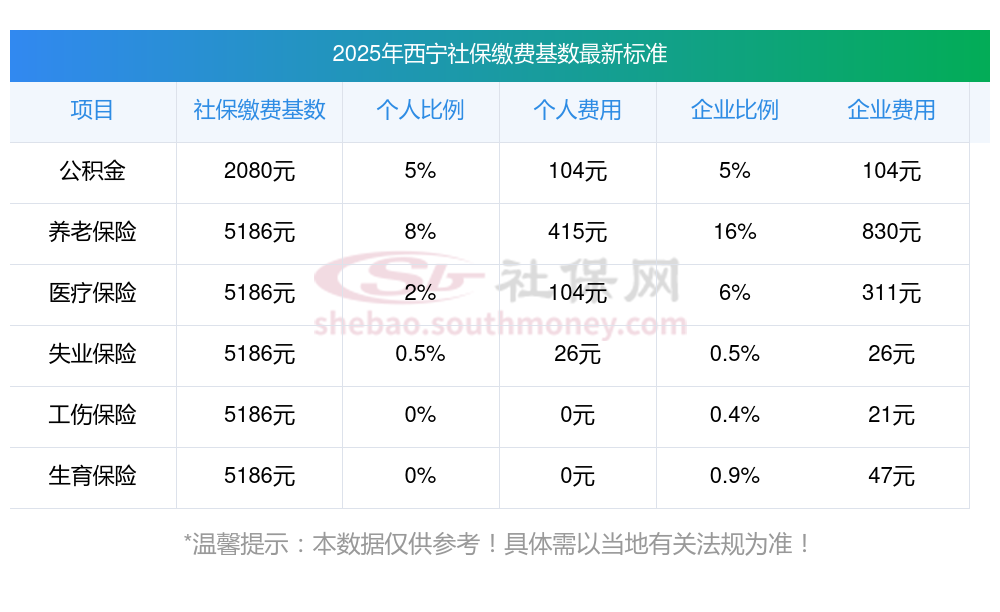 西宁职工社保缴费基数2024-2025年最新标准,如下: