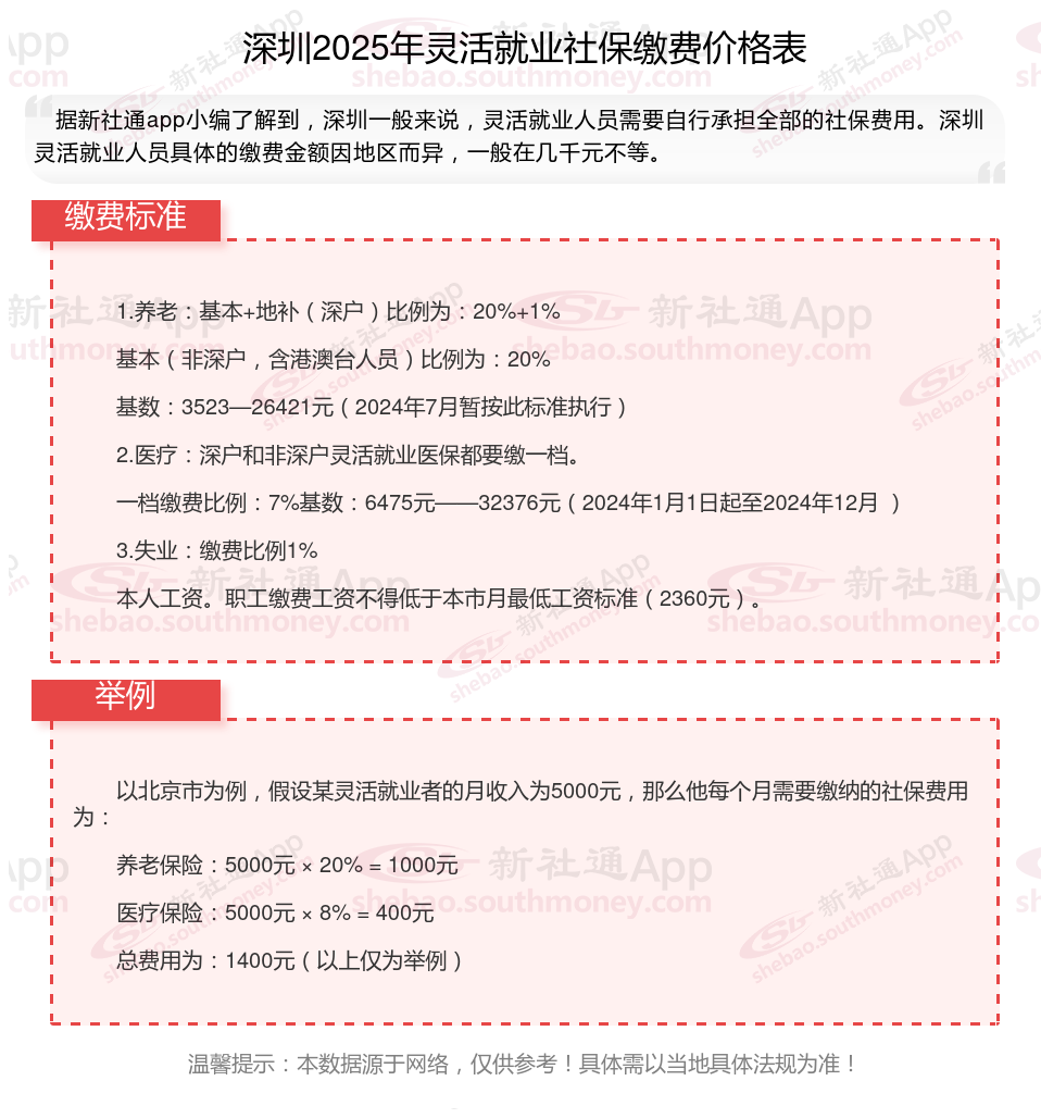 灵活就业社保是指针对灵活就业人员的社会保险制。灵活就业人员包括个体经营者、自由职业者、临时工等,他们没有固定的雇主,因此需要自行缴纳社会保险。接下来随社保君了解一下2025年深圳灵活就业人员社保交多少钱,2025年深圳灵活就业社保缴费标准的详细内容。