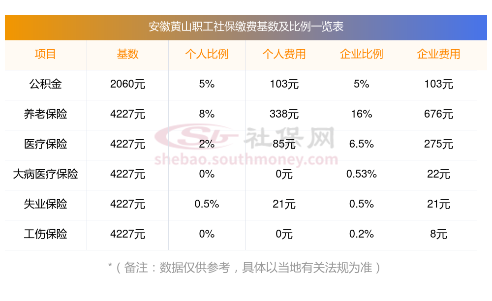 一、2025年安徽黄山职工社保缴费基数是多少钱一个月?职工社保缴纳标准是多少?