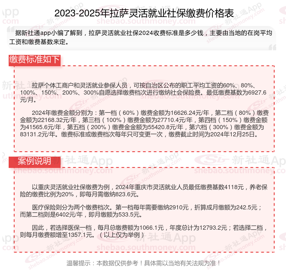 二、拉萨2024年灵活就业社保缴费基数、比例最新消息