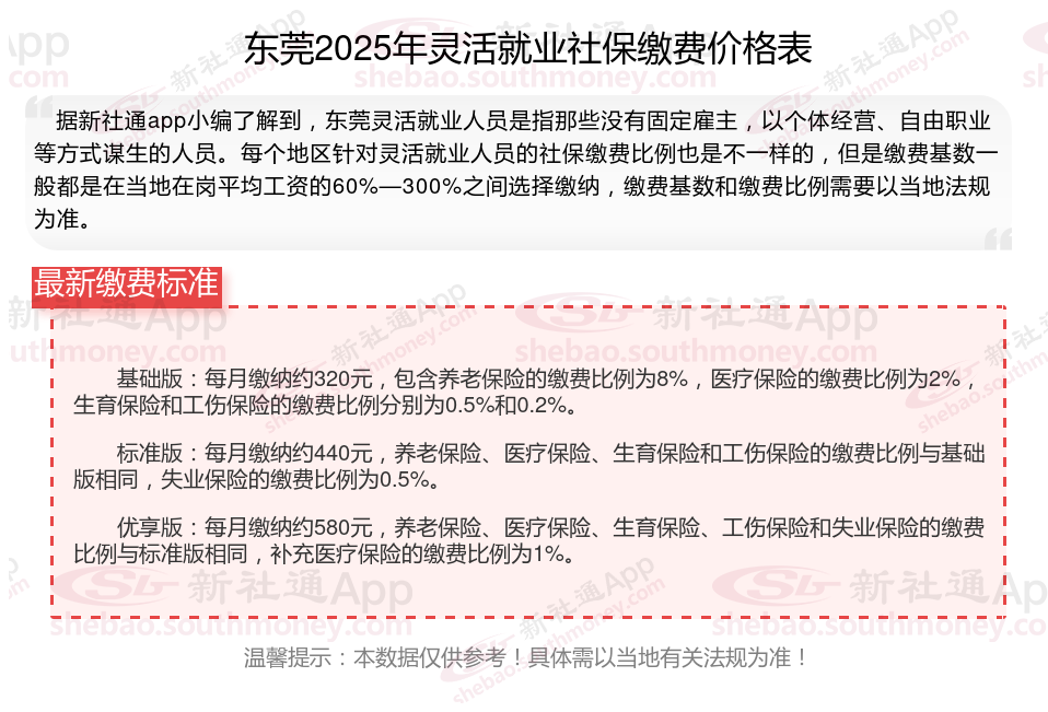 以上就是东莞灵活就业社保缴费的全部内容,数据及内容供参考!希望对你有帮助,欢迎关注新社通app解锁更多社保专业资讯。