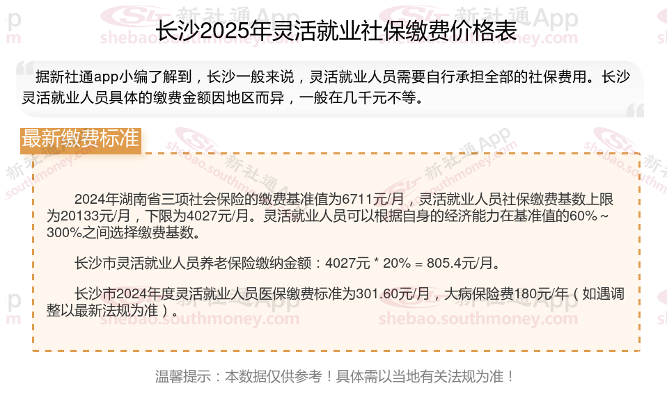 2025年长沙灵活就业人员社保需要交多少钱?社保缴费的金额取决于多个因素,包括缴费基数和缴费比例,且各地标准存在差异。下面随新社通小编一起来看看。