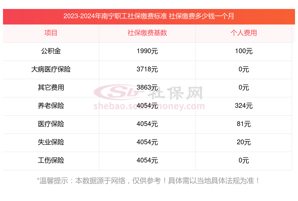 2025南宁职工社保缴费基数是多少,2024年南宁社会保险基数参照如下: