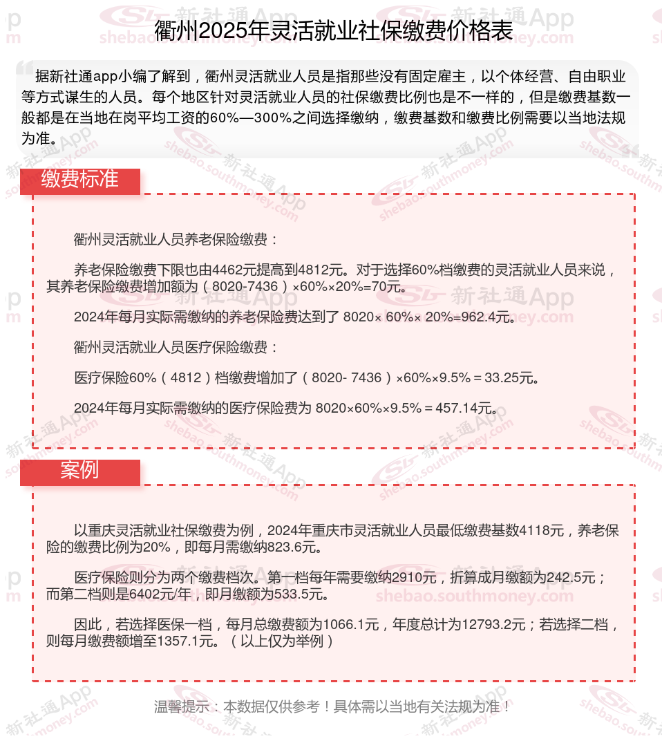 一、2025年衢州灵活就业社保缴费标准表,据新社通小编了解到,衢州社保公积金缴费基数为:3579.00元。